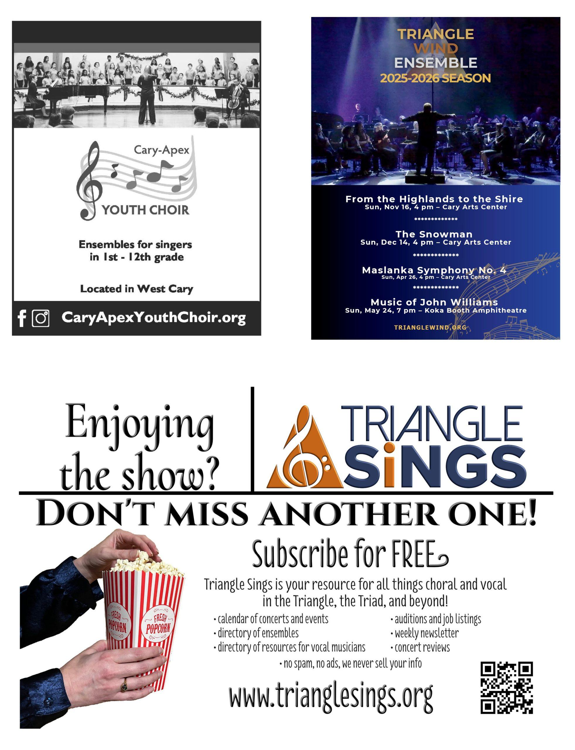 We're a proud member of the Cary Chamber of Commerce, Chorus America, The Heart of Cary Association, and ArtsNC.